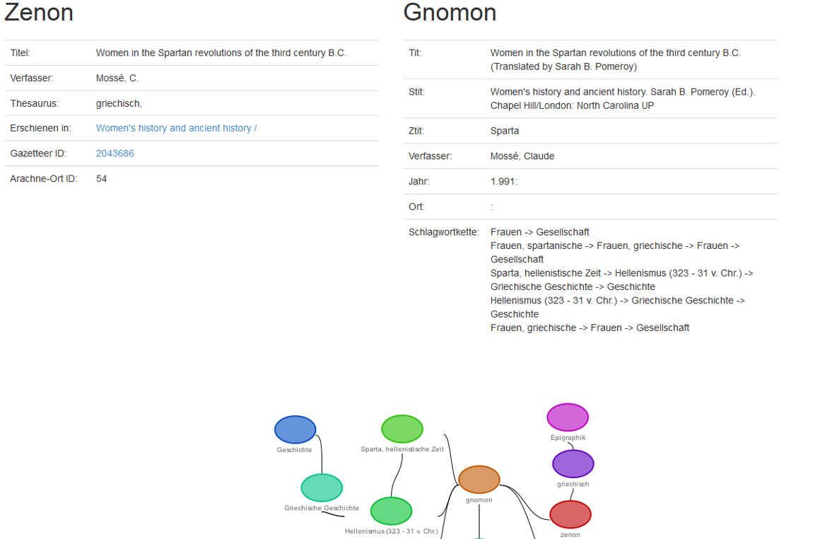 Vernetzung der Datenbestände von Gnomon Bibliographischer Datenbank und ZENON