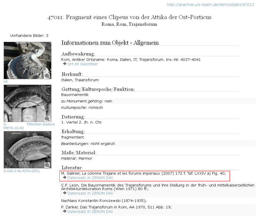Beispiel für eine Verknüpfung mit Arachne: ZENON-Datensatz (4.1) und Arachne-Datensatz (4.2)