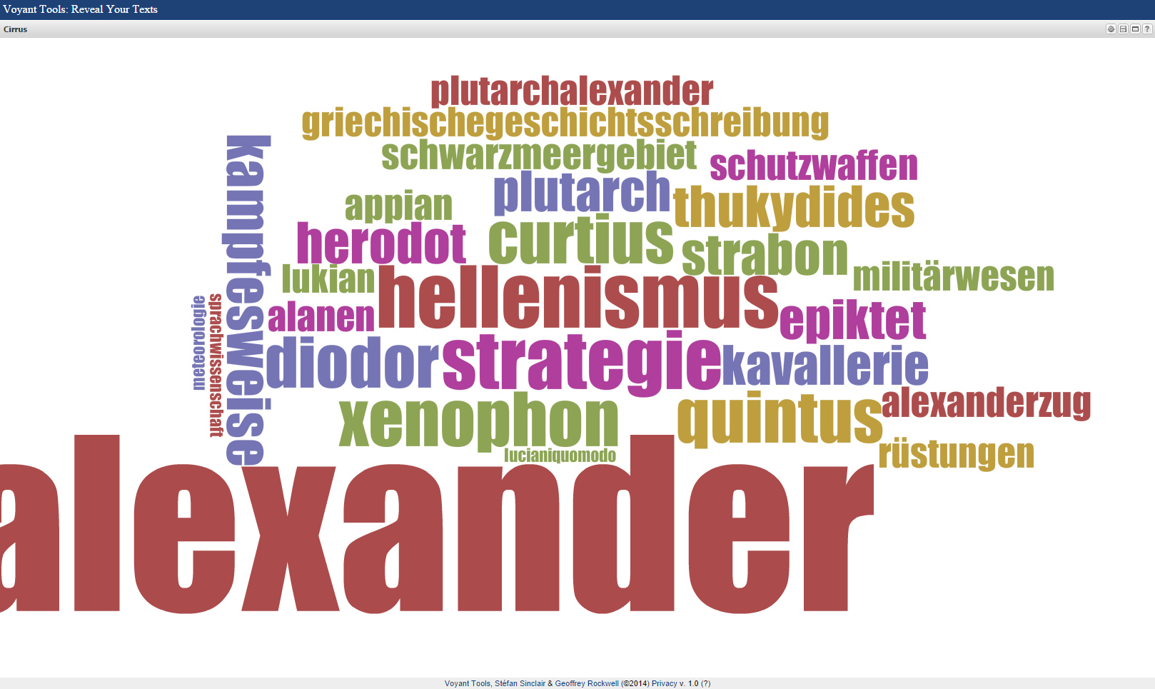 Visualisierung der Kookkurenzen aus Abb. 5 als Tag-Cloud, erzeugt mit Voyant Cirrus
