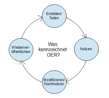 „Open Educational Resources (OERs) are any type of educational materials that are in the public domain or introduced with an open license. The nature of these open materials means that anyone can legally and freely copy, use, adapt and re-share them (vgl. Abb. 1). OERs range from textbooks to curricula, syllabi, lecture notes, assignments, tests, projects, audio, video and animation.“ (UNESCO 2015)