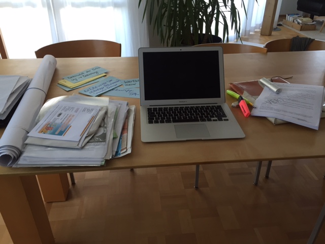 Bei Schoof (2010, S. 29) gab es die Aufgabe, ein Foto des liebsten Arbeitsplatzes ausserhalb der Bibliothek zu machen. Diese Aufgabe wurde für die zweite Erhebungs- Variante für die HFGZ etwas abgeändert. Eine Woche vor dem Fotobefragungstermin wurden die vier Teilnehmer per E-Mail kontaktiert und gebeten, ein Foto ihres liebsten Arbeitsplatzes mitzubringen. Es sollte dabei keine Rolle spielen, ob das drinnen oder draussen, eine Bibliothek, ein Café oder im Büro ist. Es ging darum, herauszufinden, wo die Teilnehmer am liebsten arbeiten oder lernen und was dabei auf dem Tisch ist.