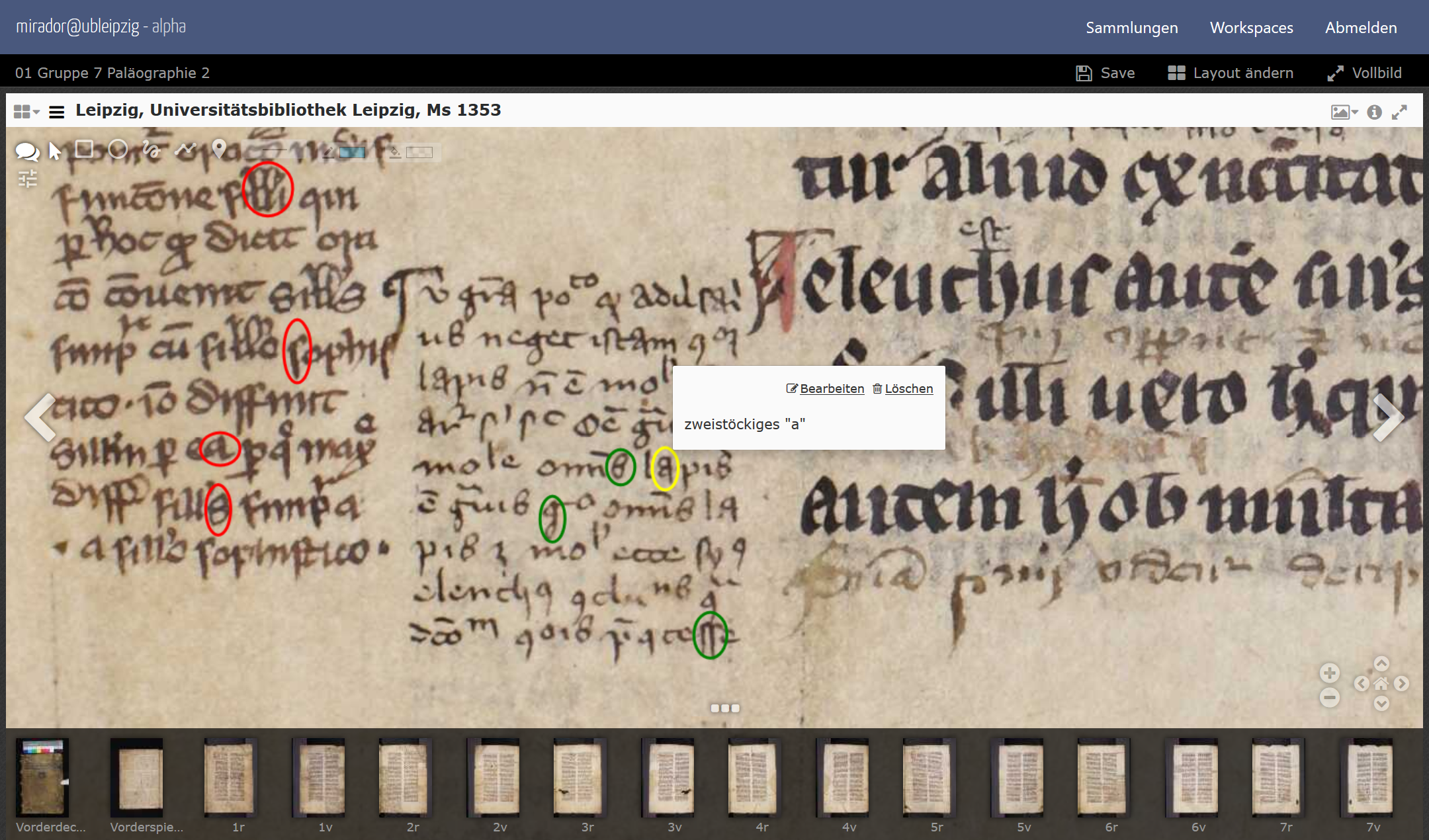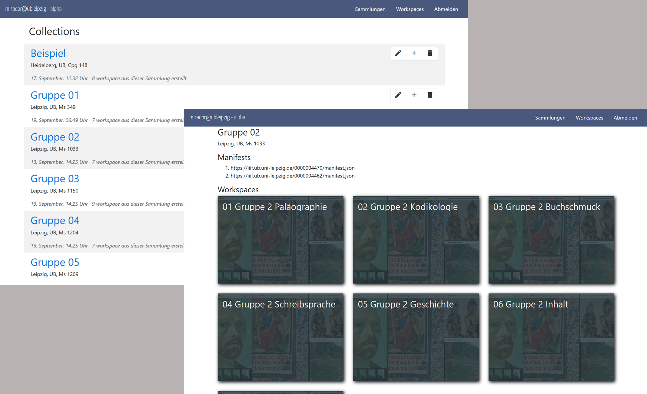 Im 6. Alfried Krupp-Sommerkurs für Handschriftenkultur, der im September 2017 an der Universitätsbibliothek Leipzig stattfand, wurde zum ersten Mal der digitale Workspace „mirador@ubleipzig“ eingesetzt. Dieser basiert auf der IIIF-Technologie und erlaubt es, Digitalisate aus verschiedenen Quellen in eine personalisierte Arbeitsumgebung zu laden sowie Annotationen und Kommentare zu bestimmten Bildregionen einzufügen und abzuspeichern. Nach dem Sommerkurs wurde eine Evaluation zur Usability des Workspaces unter den Teilnehmerinnen und Teilnehmern durchgeführt, die ein positives Echo zeigte und wichtige Impulse zur Weiterentwicklung der Software gab.