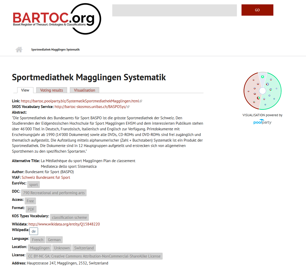 Abb. 2: BARTOC-Eintrag der Magglinger Systematik mit Visualisierungslink