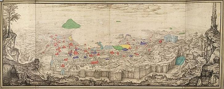 Jan van Stinemolen, Panorama di Napoli, 1582, disegno su carta, 462 × 1219 mm. Albertina, Vienna, inv. 15444 (web application)